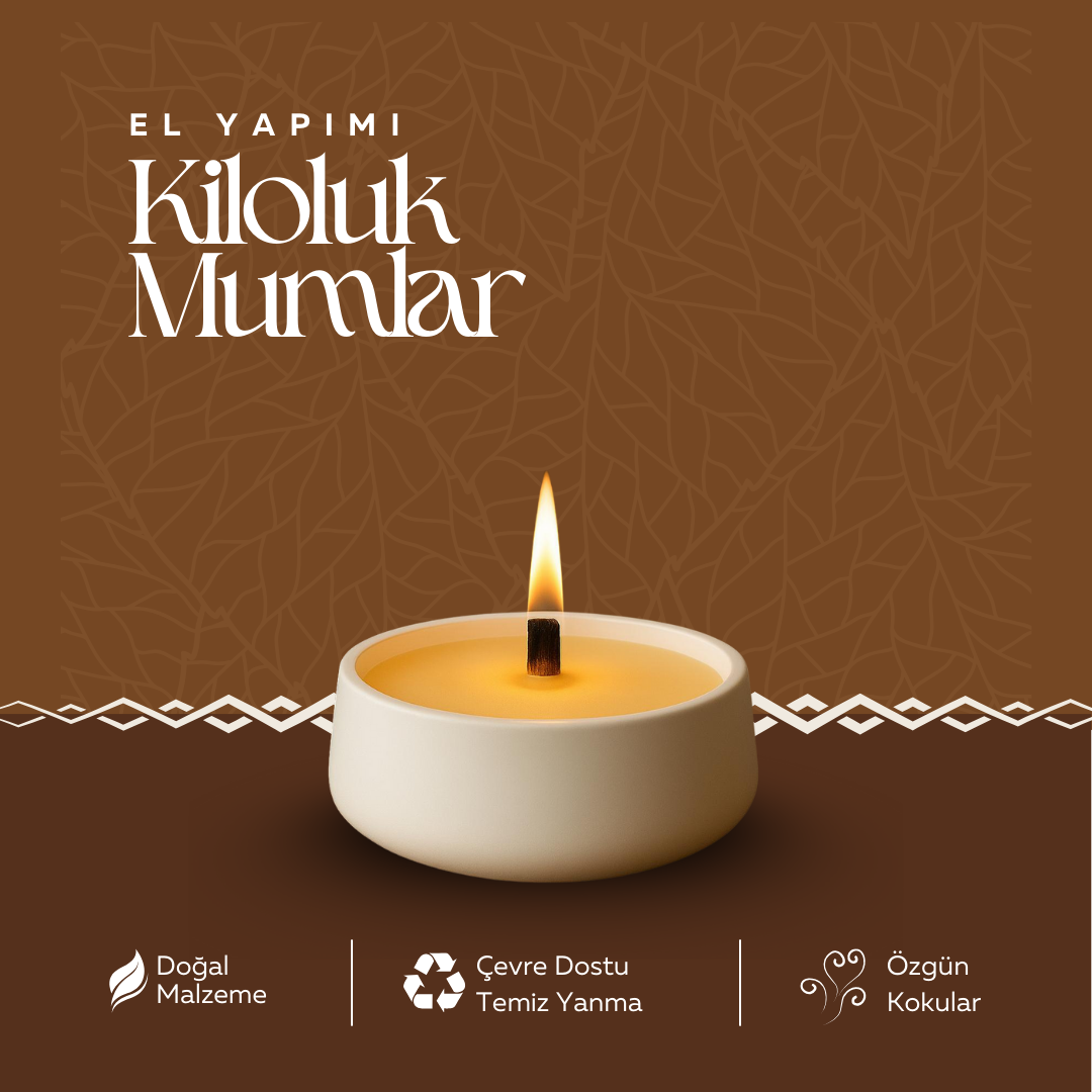 El yapımı, etkileyici bir deneyim sunan özel mumumuz, uzun yanma süresi ve estetik tasarımıyla ortamınıza sıcaklık ve zarafet katıyor. Rakiplerden daha yüksek kalite ve özgünlük sağlıyoruz.