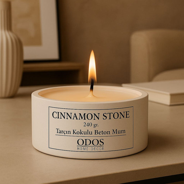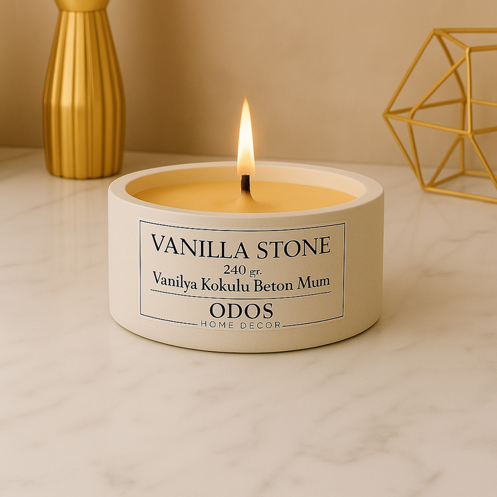 El Yapımı Vanilya Kokulu Beton Mum – 240 gr, Dekoratif Tasarım