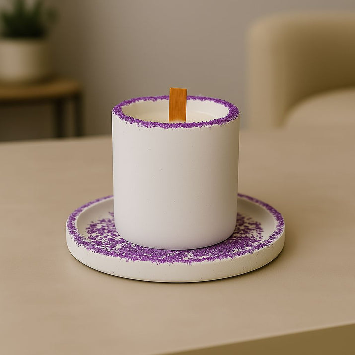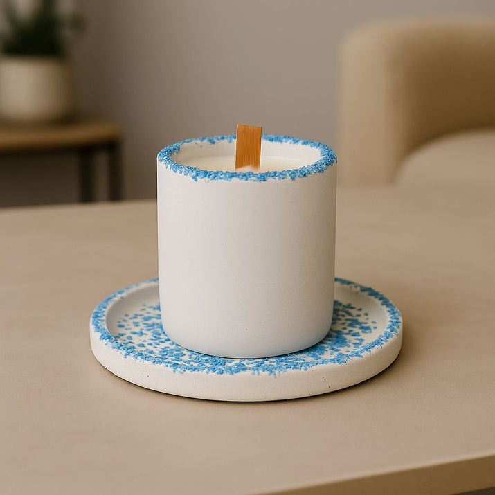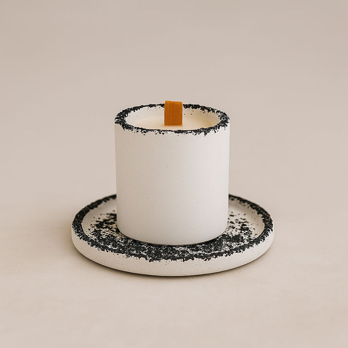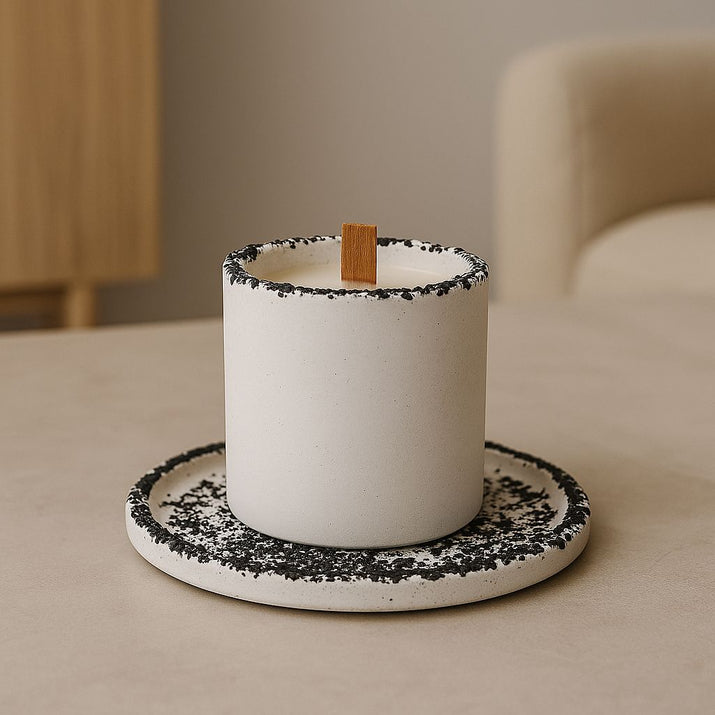Kırık Taş Koleksiyonu Tepsili Beton Mumluk – Taş Detaylı, Dekoratif Tasarım